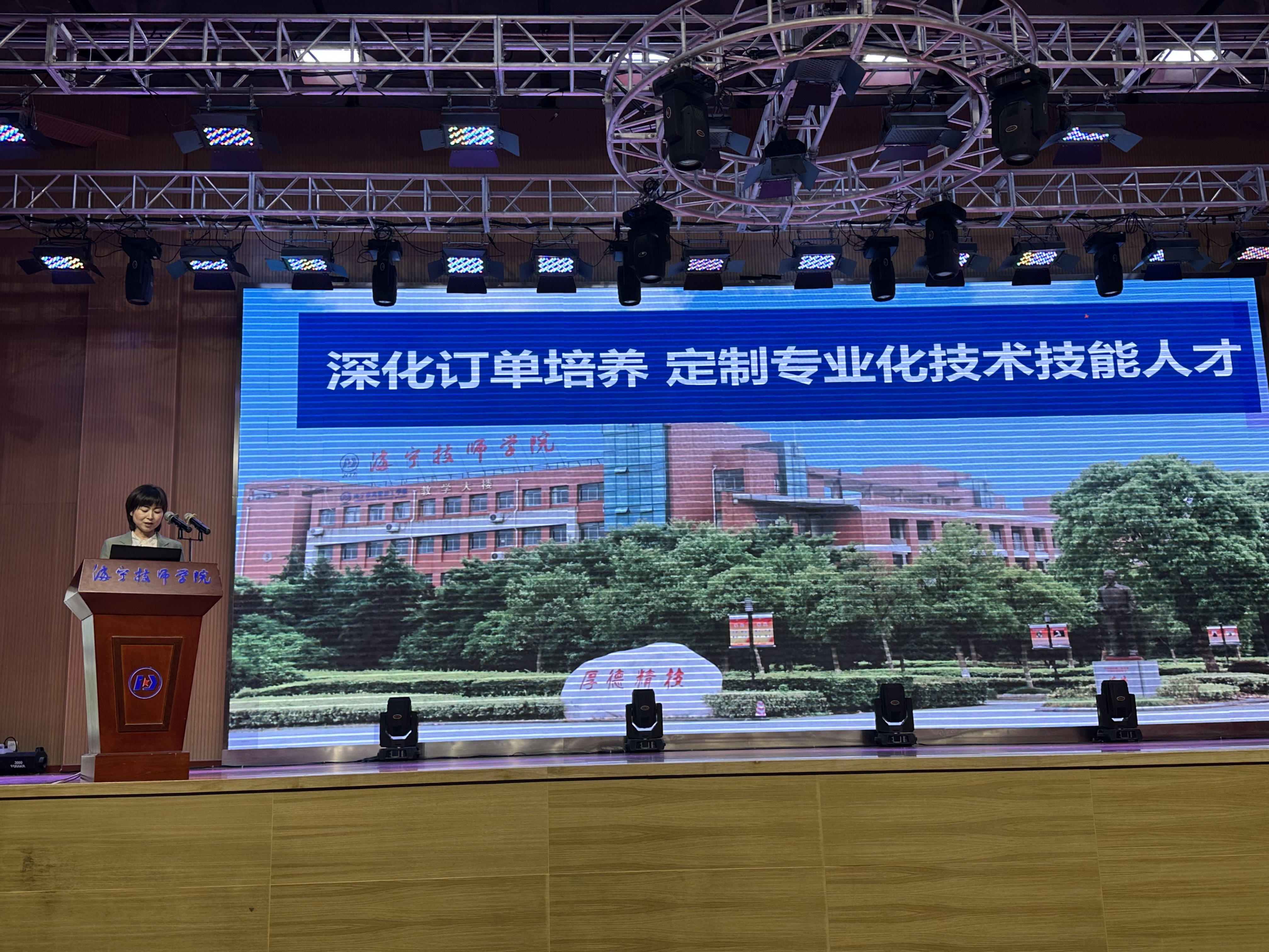 此外,對外聯絡處處長錢葉萍老師發表了主題為《深化訂單培養,定制專業化技術技能人才》的宣講。她詳細介紹了學校集成電路專業訂單班的獨特培養政策,展現了學校對于定制化、專業化人才培養的重視,使同學們和家長們對這一創新教育模式有了更加深入的了解和認識。