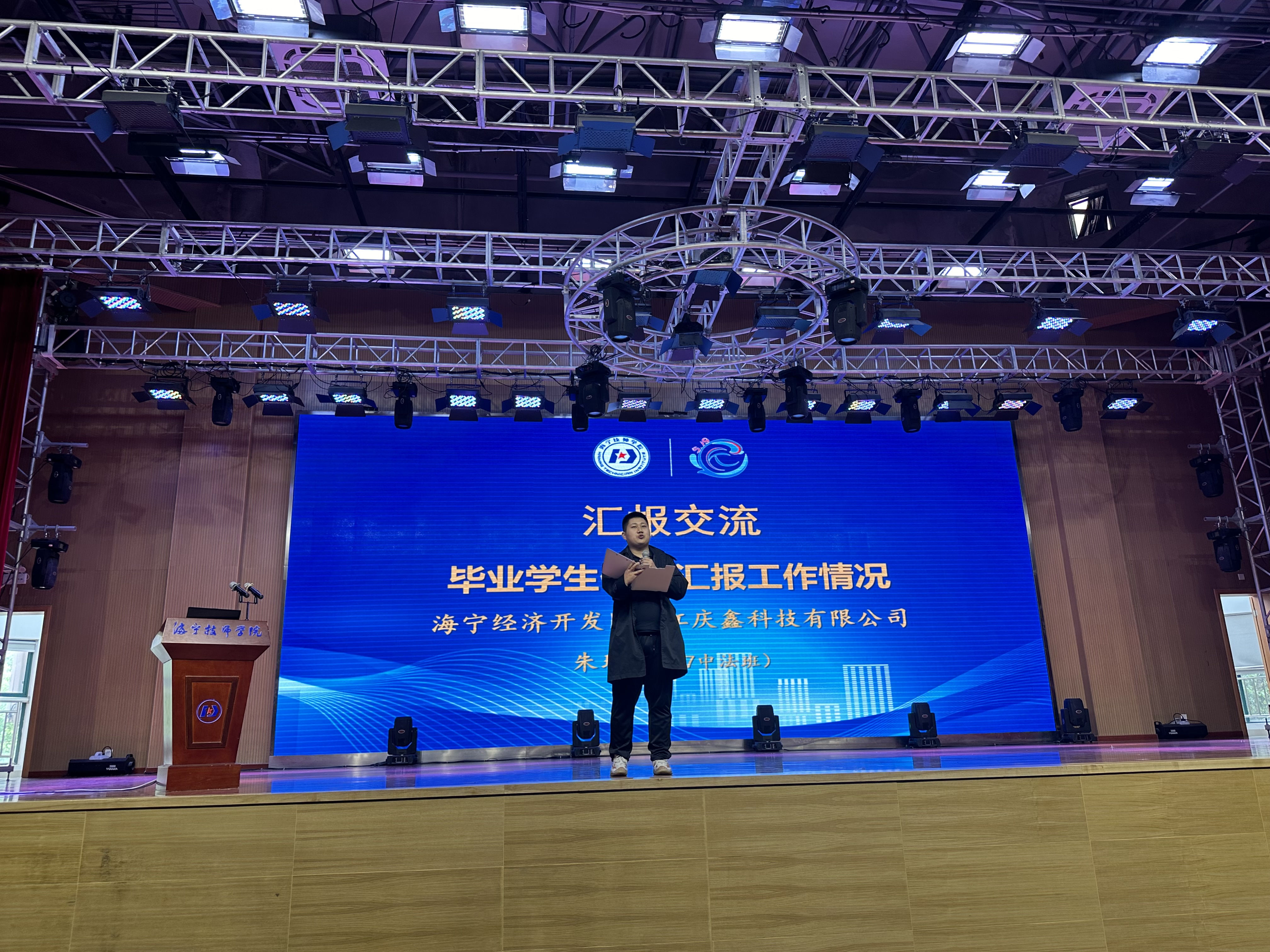 緊接著,原17中法智能制造班的優秀畢業生朱琦作為海寧經濟開發區浙江慶鑫科技有限公司的員工,分享了他在工作中的成長經歷。他鼓勵在校學生珍惜學習時光,努力提升自身素質,為未來的職業生涯打下堅實的基礎。