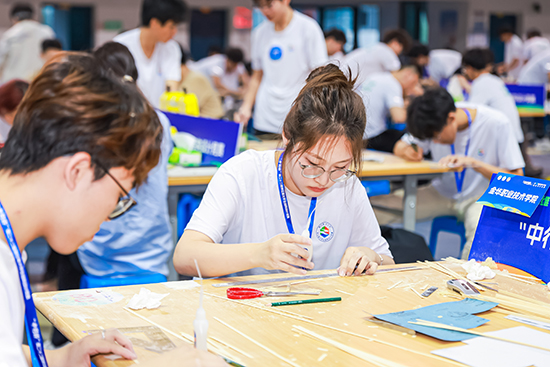 本屆大賽以“懸挑觀景平臺結構設計與模型制作”為選題,包含理論方案、模型制作、陳述與答辯、加載試驗等環節。參賽選手們制作的模型由不超過105根竹材制作而成,竹材厚度1毫米、寬度2—6毫米和長度不超過900毫米,整體約重100—300克,能承受模型自重的50倍荷載。大賽用三個鋼球來模擬人群荷載,在4分鐘的加載時間內,當模型出現結構整體垮塌,或模型發生位移、測試報警器響起,或加載過程中任意小鋼球滾出觀景平臺道板,均視為模型加載失敗,加載過程驚險又刺激。