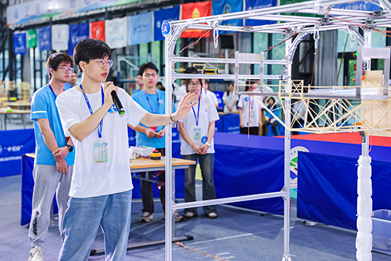 5月10日至12日,正值2024年職教活動周,“中行杯”第22屆浙江省大學生結構設計競賽在金華職業技術學院舉行,來自浙江大學、寧波大學等全省48所高校100支隊伍的300名土建類專業本專科生同臺競技,他們以竹條為材,發揮奇思妙想設計,傾注匠心精巧制作,在9個小時中完成懸挑觀景平臺結構設計與模型制作,并測試其模擬承受風載及移動人群重力作用下的平臺結構的安全可靠性。