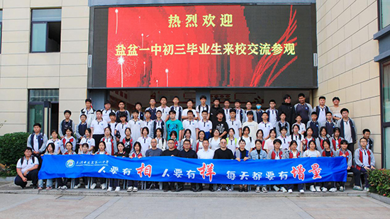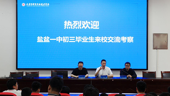 參觀體驗結(jié)束后,學生在階梯教室集合參加學校講座。何國勇致辭,對鹽盆一中來校參觀的學生和帶隊老師表示熱烈歡迎。并從學校概況、專業(yè)設(shè)置、教學特色、培養(yǎng)成果等四個方面進行了介紹。