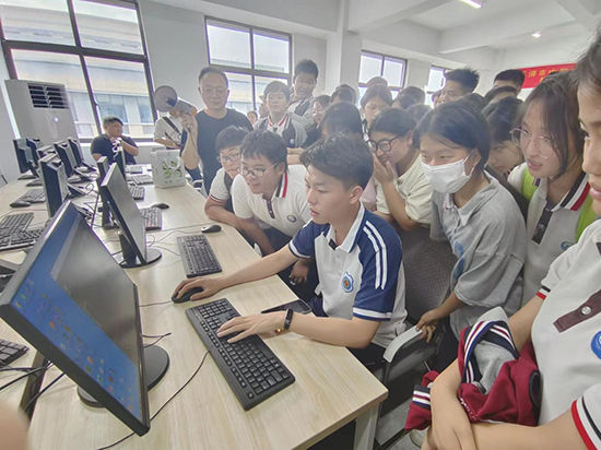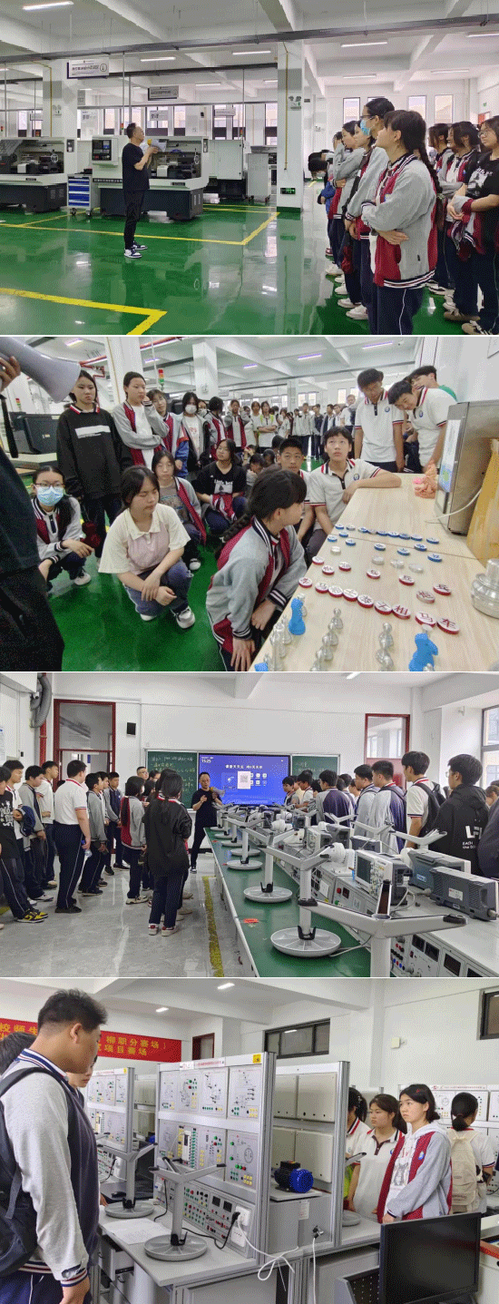 在鉗工、數(shù)車實訓室,學生們參觀了精密機械加工設(shè)備,驚嘆于現(xiàn)代科技的神奇與力量;在電子、PLC實訓室,他們了解了電路安裝和調(diào)試流程,對電子產(chǎn)品制作行業(yè)產(chǎn)生了濃厚的興趣;在人工智能實訓室,由學生親自體驗AE技術(shù),感受到了影視后期制作的魅力。