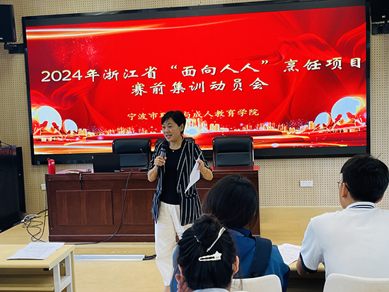 最后,寧波市職業與成人教育學院職教處李靜珠主任結合市職成院最新修訂獎勵條例給全體集訓師生做了動員。李老師回顧了前面兩屆省級烹飪人人賽第一、第二的輝煌戰績,從團隊師資配備、精選集訓場地、選手狀態等方面分析,鼓勵學生忘記選中時的ABC,從“新”出發,開啟新的征程,爭取在省人人賽中發揮最優的自己,為寧波代表隊爭取優異的成績!