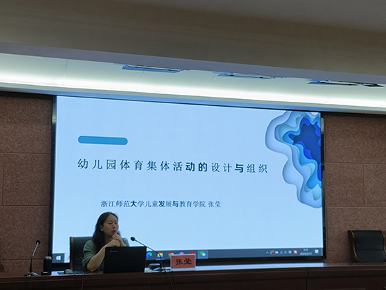 培訓(xùn)期間,浙江師范大學(xué)兒童發(fā)展與教育學(xué)院學(xué)前教育系教授張瑩帶來(lái)了專題講座《幼兒體育活動(dòng)設(shè)計(jì)》和《幼兒園游戲中教師的自我評(píng)價(jià)》,在講座中張教授從體育活動(dòng)的價(jià)值、集體教學(xué)活動(dòng)成功要點(diǎn)、體育集體教學(xué)活動(dòng)設(shè)計(jì)框架、幼兒的發(fā)展評(píng)價(jià)等四個(gè)方面展開講解,通過實(shí)際案例的展示、現(xiàn)場(chǎng)的互動(dòng),讓學(xué)員深刻認(rèn)識(shí)到幼兒體育集體活動(dòng)的重要性,也從中學(xué)到許多實(shí)用的設(shè)計(jì)和組織技巧,為學(xué)員今后的教學(xué)工作提供了寶貴的建議。