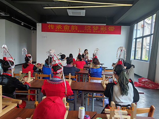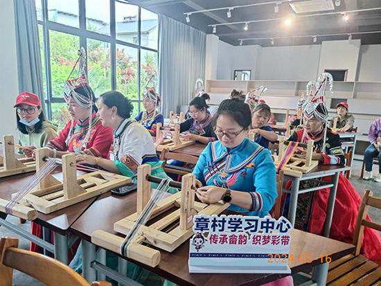 5月16日,安吉縣社區教育學院章村學習中心組織開展畬族手工線上加線下編織培訓,以非遺促進經濟發展,帶動群眾就業創業。共有25位婦女參加培訓。