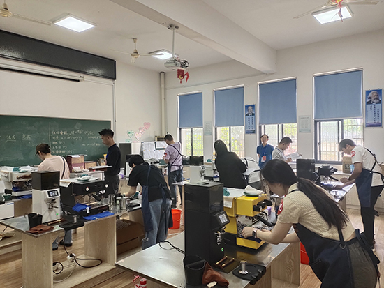 最后一天的結業考核包括理論考試和實踐操作兩部分。學員們筆試結束后按座位號依次進入操作室,將心中的咖啡故事通過一杯杯精心制作的咖啡呈現出來。評委們對學員們的作品給予了高度評價,認為這不僅是對傳統咖啡文化的傳承,更是對現代咖啡藝術的創新。