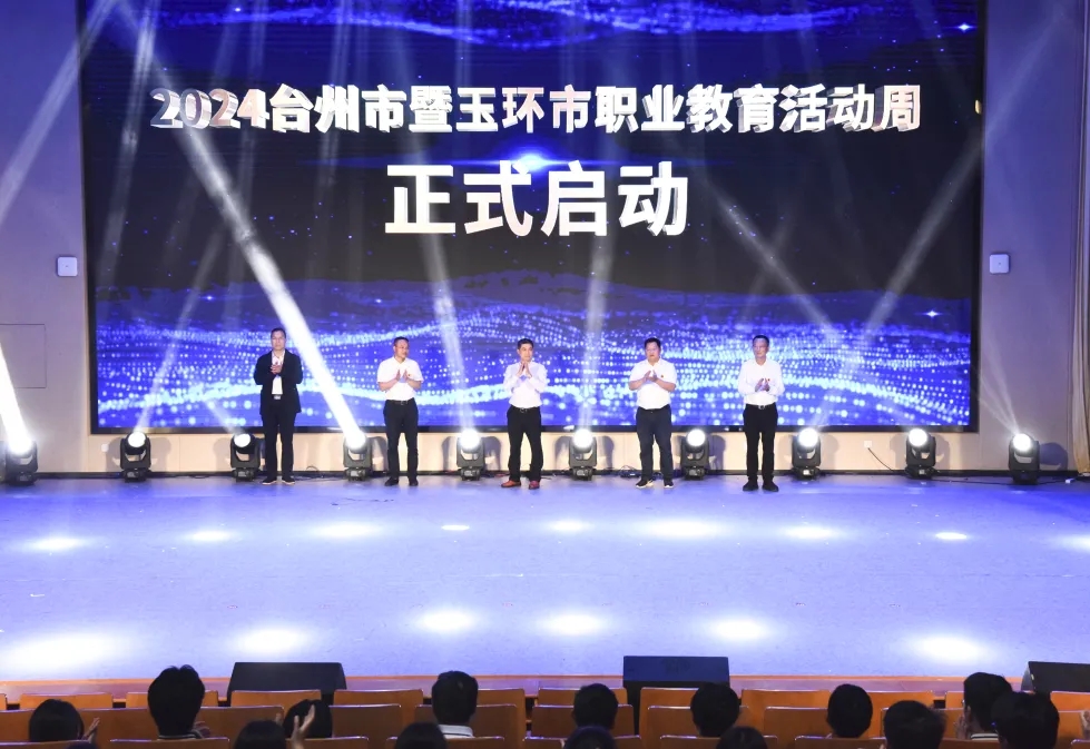 隨后,林鑒兵、林杭、魯才強、方宏亮、舒歡一齊按下啟動柱,宣布2024年臺州市暨玉環市職業教育活動周正式啟動。