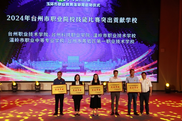 活動現場為2024年臺州市“面向人人”競賽文化課項目團體前六名、臺州市“面向人人”競賽專業課一等獎獲得者、臺州市中等職業學校(技師學院)技能大賽教學能力比賽一等獎獲得者、臺州市職業院校技能比賽突出貢獻學校頒獎。