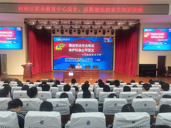 為創(chuàng)設(shè)和諧、平安、文明的校園環(huán)境,增強學生的法制安全意識,日前,柯橋區(qū)職業(yè)教育中心特聘請紹興市公安局柯橋分局安昌派出所丁梁峰警官來校做反詐、反欺凌主題法制安全知識講座。