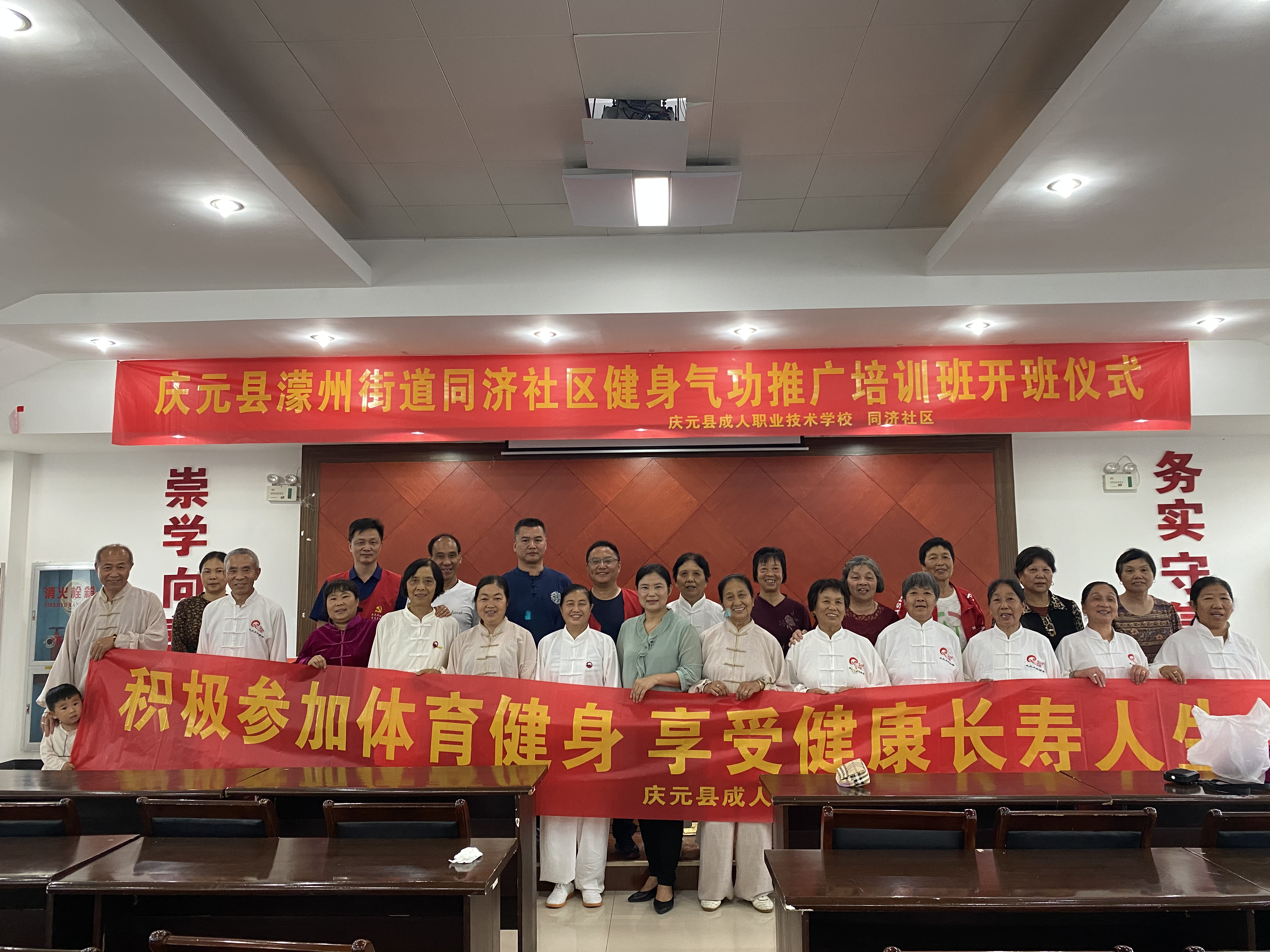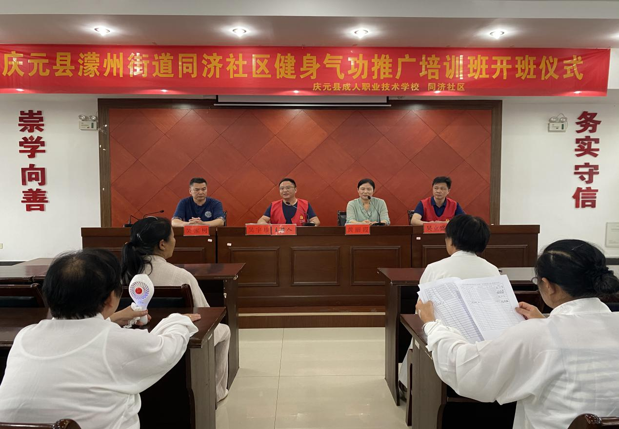 為深入貫徹全民健身國家戰略,滿足社區中老年人群對健康生活的向往,5月20日上午,慶元縣成技校在同濟社區文化禮堂舉行健身氣功培訓班開班儀式。