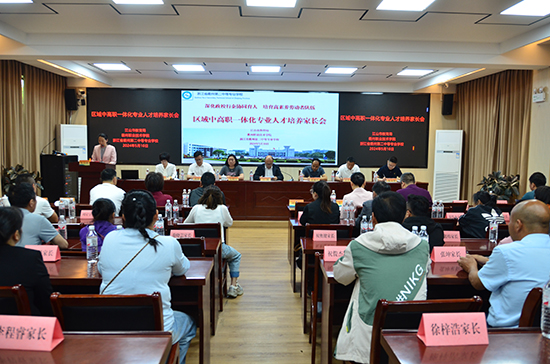 在春意盎然、生機(jī)勃發(fā)的五月,衢州第二中等專(zhuān)業(yè)學(xué)校迎來(lái)了一場(chǎng)關(guān)乎區(qū)域職業(yè)教育未來(lái)發(fā)展的會(huì)議。5月10日上午,衢州第二中專(zhuān)崇業(yè)樓一樓報(bào)告廳內(nèi)座無(wú)虛席,衢州第二中專(zhuān)區(qū)域中高職一體化專(zhuān)業(yè)人才培養(yǎng)家長(zhǎng)會(huì)在此順利舉行。衢州職業(yè)技術(shù)學(xué)院、江山市教育局、衢州第二中專(zhuān)相關(guān)領(lǐng)導(dǎo)以及區(qū)域中高職一體化2023級(jí)家具設(shè)計(jì)與制作、機(jī)械加工技術(shù)兩個(gè)班的家長(zhǎng)們出席本次活動(dòng)。