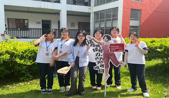 活力橙與高掛的七彩橫幅交相輝映,一條條醒目的橫幅是學(xué)生為自家班主任的打call標(biāo)語。“收到學(xué)生傳送的潑天浪漫”“遇見即是幸運,愛你們”“被愛與鼓勵”班主任們紛紛拍照發(fā)圈,記錄下職業(yè)生涯中的難忘時刻。