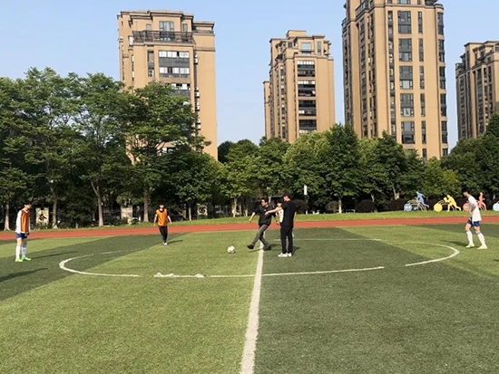 足球賽場,同學們揮灑汗水,為榮譽而戰(zhàn)。他們奮力奔跑,用雙腳詮釋著對足球的熱愛。