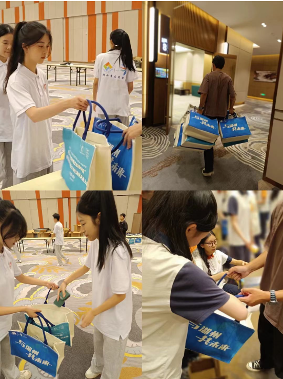 浙江省湖州藝術與設計學校“和煦陽光”志愿服務隊憑借多次大型會務禮儀服務經驗,再次承接未來大會的接待、頒獎禮儀及講解工作。自16日起,在團市委老師的精心組織下,校團委聯合航空禮儀專業教師帶領36名志愿者以飽滿的熱情積極投身到會議的各項準備環節,高品質、高標準完成文件分裝、禮儀接待、跟車講解等重要任務。“藝小青”志愿者以專業的服務水準和熱情的服務態度贏得省市級領導及各界嘉賓的贊譽。