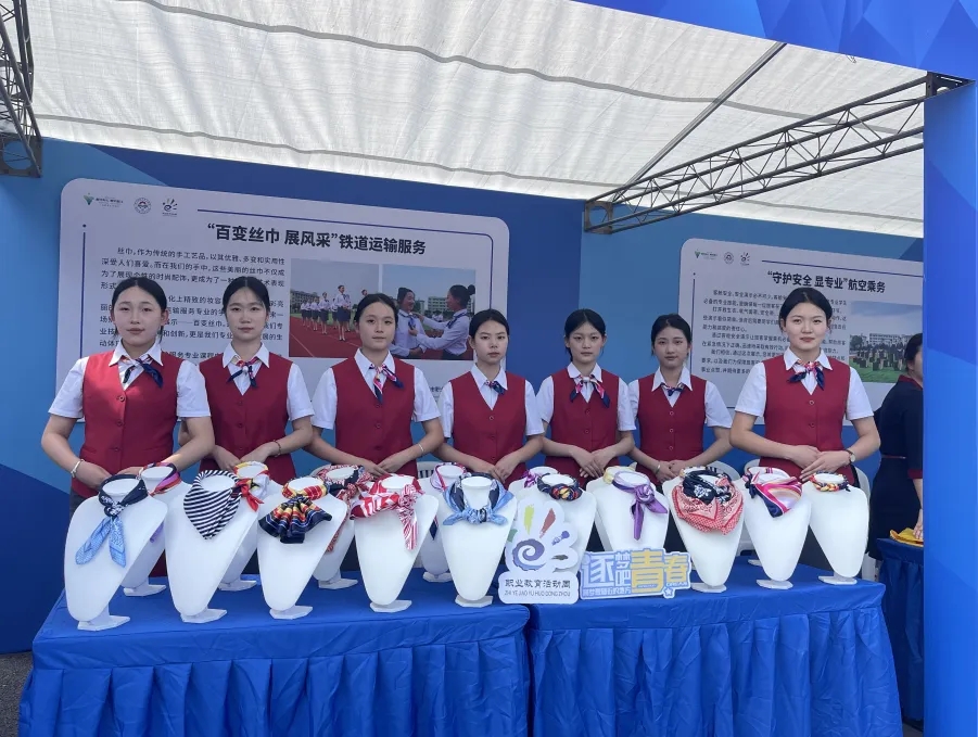 5月16日,學校學生穿上專業制服,化上精致的妝容,再系上一條色彩亮麗的絲巾……在職業教育活動現場,學校的動態展示項目“百變絲巾”吸引眾多觀眾駐足觀看,獲得與會領導的肯定。