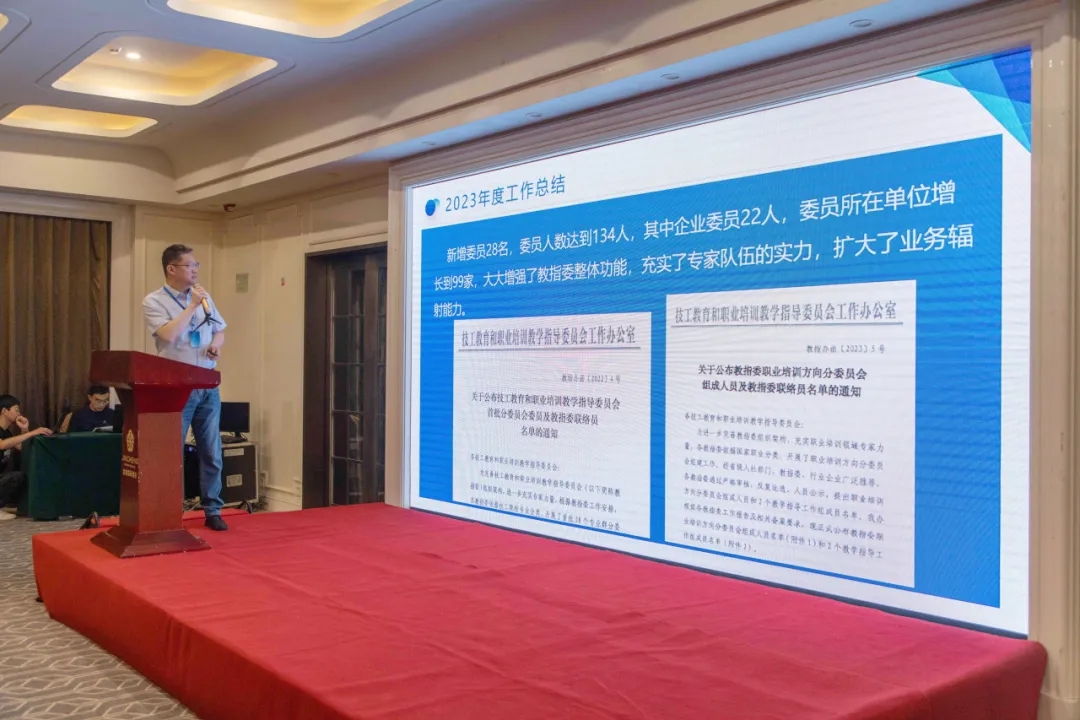 大會第二階段,新能源與交通運輸類教指委主任委員、河南交通技師學(xué)院院長李強作2023年度工作報告,并就2024年工作計劃作了部署。杭州技師學(xué)院黨委書記邵偉軍以《建設(shè)高水平交通特色院校 培養(yǎng)高素質(zhì)綜合交通運輸技能人才》為題為大會作專題講座,重點介紹杭州技師學(xué)院專業(yè)建設(shè)、產(chǎn)業(yè)學(xué)院和企業(yè)學(xué)院創(chuàng)建、高技能人才培養(yǎng)體系構(gòu)建等方面經(jīng)驗做法和典型案例。