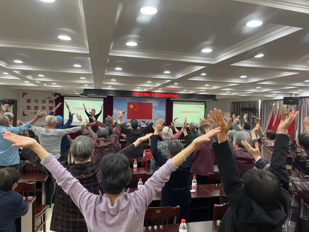 太極拳是中華傳統(tǒng)養(yǎng)生功法,它不僅可以增強(qiáng)身體的靈活性和協(xié)調(diào)性,還有助于調(diào)理身心,提升整體健康水平。講座中,方老師以通俗易懂的語言向大家普及了太極拳的流派、運(yùn)動特點(diǎn)、養(yǎng)生效果等,并通過展示呼與吸的有機(jī)結(jié)合,運(yùn)用一招一式,為在座的學(xué)員展示了太極拳的博大精深。方老師向在座的太極愛好者們耐心詢問之前練習(xí)情況,結(jié)合“拳友”們的學(xué)習(xí)進(jìn)度教授大家蹲馬步、抱球等簡單的基礎(chǔ)動作并進(jìn)行了示范,以達(dá)到日常鍛煉功能。