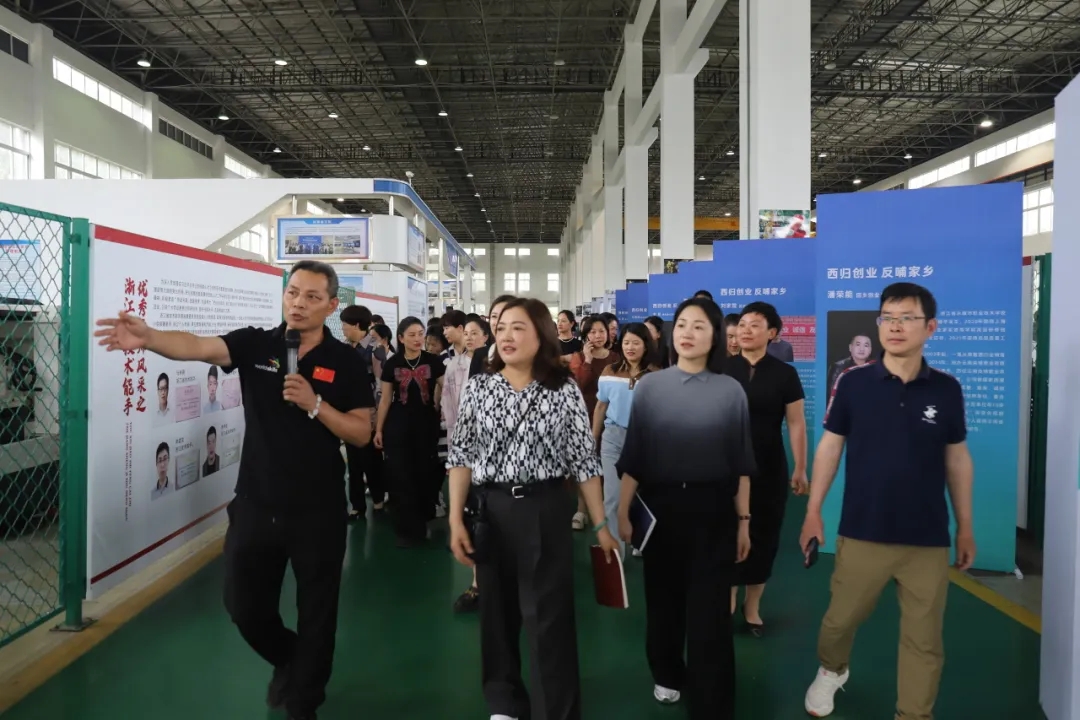 市婦聯黨委書記、主席賈益微,市婦聯黨組成員、副主席朱紅丹,市女企業家協會會長胡曉軍及協會的女企業家們實地參觀了學院產教融合大樓、模具產學研中心、工程實踐中心等實訓基地。