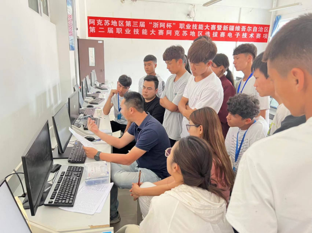 為進一步提升援派工作質量,深化援派工作成效,增進湖州與阿克蘇地區在教學業務、教師培訓、技能競賽等方面的交流與溝通,擴大兩地結對共富影響力,受阿克蘇地區人社局、阿克蘇地區中等職業技術學校及阿克蘇技師學院邀請,浙江信息工程學校·湖州工程技師學院黨委委員、副校長姚志恩,攜國家教學創新團隊成員湯葉飛、司杰于5月10日至16日前往阿克蘇地區中等職業技術學校、阿克蘇技師學院、柯坪縣等地開展交流指導,同時擔任阿克蘇地區第三屆“浙阿杯”職業技能大賽電子技術賽項裁判長一職,參與比賽執裁工作。