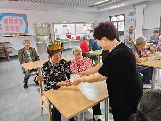 最高興的要算駱大媽、樓大媽與陳大爺了,當日恰逢其生日,社區婦女主任高小英買來三個生日小蛋糕,一一切好,盛情送上生日祝福,還為壽星們戴上皇冠,三位壽星樂開了懷。眾人齊唱《生日快樂》。