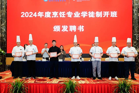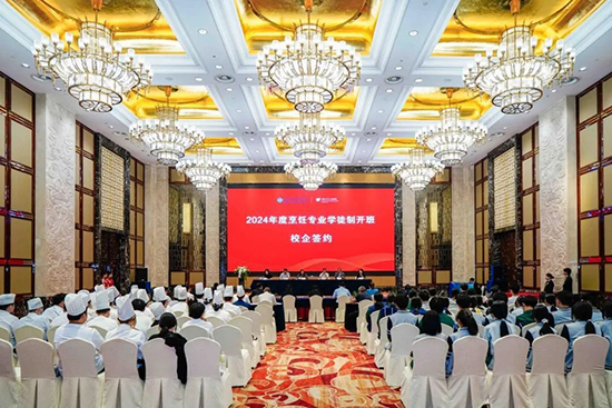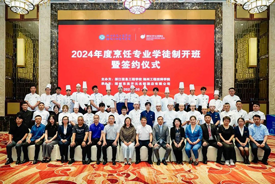 5月29日下午,浙江信息工程學(xué)校·湖州工程技師學(xué)院與湖州東吳開元名都酒店有限公司、湖州市城投觀湖酒店有限公司、浙北大酒店、天煌大酒店、湖州賓館有限公司、湖州南潯博陽(yáng)開元名庭度假酒店、龍之夢(mèng)雅仕酒店的代表齊聚東吳開元名都酒店開元廳,共同舉行2024年烹飪專業(yè)現(xiàn)代學(xué)徒制開班暨簽約儀式。