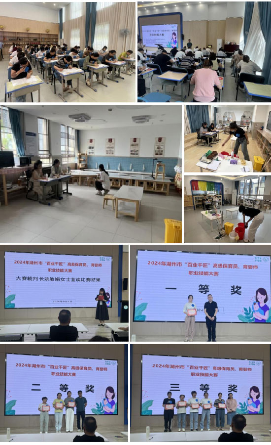 為進(jìn)一步落實(shí)職業(yè)技能人才培養(yǎng)目標(biāo),提升幼兒教育群體職業(yè)技能水平,帶動(dòng)鄉(xiāng)鎮(zhèn)全區(qū)幼兒園保育工作平穩(wěn)發(fā)展,助推吳興區(qū)幼教、保教整體水平提升,2024年湖州市“百業(yè)千匠”高級(jí)保育員、育嬰師職業(yè)技能大賽于6月2日在湖州市吳興區(qū)常溪幼兒園舉行。本次大賽由湖州市人才辦、湖州市人力資源和社會(huì)保障局、湖州市總工會(huì)主辦,妙西鎮(zhèn)人民政府和吳興區(qū)教育局承辦,湖州藝術(shù)與設(shè)計(jì)學(xué)校、妙西鎮(zhèn)總工會(huì)、妙西鎮(zhèn)人力資源和社會(huì)保障中心、妙西鎮(zhèn)成人文化技術(shù)學(xué)校及湖州市吳興區(qū)常溪幼兒園共同協(xié)辦。