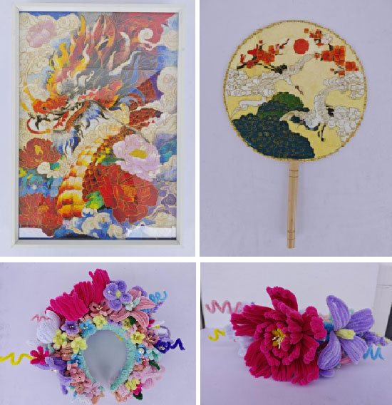 此外,掐絲畫和簪花等非遺手工藝品也在此次展覽中亮相。同學(xué)們通過親手制作,將這些傳統(tǒng)技藝與現(xiàn)代設(shè)計相結(jié)合,創(chuàng)作出了一系列獨(dú)具特色的作品。這些作品不僅具有很高的藝術(shù)價值,也充滿了濃郁的文化底蘊(yùn)。