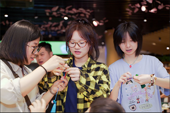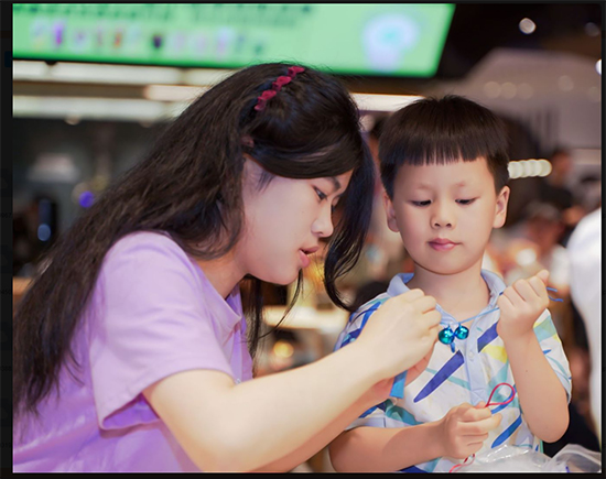 活動吸引了許多小朋友及家長的熱情參與,場面火爆。學校服裝專業教師丁春燕通過與小朋友互動分享端午節的傳統習俗,引出本次活動的內容,制作蓮蓬香袋。丁老師講解了操作過程后,學校服裝專業學生與小朋友們共同完成了香袋的制作。小朋友們和家長們紛紛表示,自己動手完成了漂亮的小香袋非常有意義。學校服裝專業學生也表示通過這樣的公益活動提高了自身的價值感。