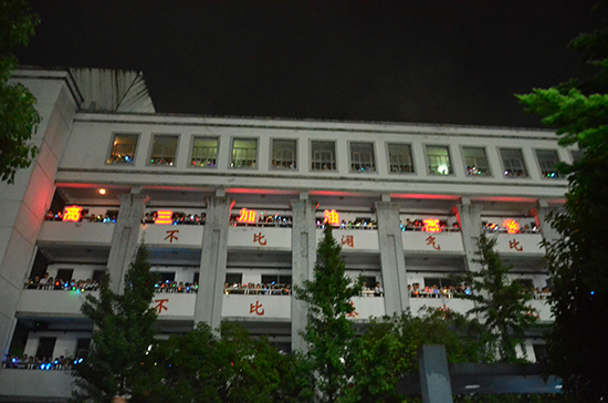 更讓人熱血沸騰的,是隨后舉行的喊樓活動。在主持人的帶領下,高一年級的同學們紛紛走出班級,在走廊內整齊列隊,高二年級的同學們則站在高三教學樓下,他們揮舞著手中的熒光棒,“高三加油!高考必勝!”“加油!加油!加油!”“必勝!必勝!必勝!”一聲聲吶喊,如同戰鼓擂動,激勵著每一位高三學子,他們也紛紛走出教室,站在走廊上,與學弟學妹們互動,共同分享這激動人心的時刻。