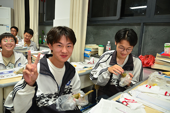 活動伊始,學校領導帶著滿滿的祝福和期待,走進了每一個高三班級。他們親手將發糕、粽子送到每一位學子手中。糕粽寓意著“高中狀元”,寄托著學校對學子們金榜題名的美好祝愿。除了美食,學校還為每位高三學子準備了兩雙特別的襪子,這些襪子上印有“金榜題名”“逢考必過”等字樣,寓意著學校對同學們的祝福和期望。學子們品嘗著美味的糕粽,臉上洋溢著幸福的笑容。