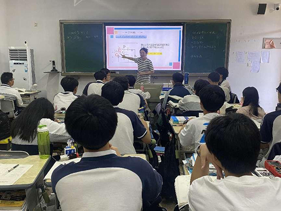 上午,徐律老師帶來公開課《相貫線》。他以學測考點為準繩,通過歷年真題將“思考、解答、討論、總結”四步驟貫穿課堂,帶領同學深抓要領。不僅讓同學們掌握了相貫線的知識點,還提煉出針對不同考點的解題口訣。同學們沉浸在幾何的空間中樂學活用,成功達到預期的教學效果。