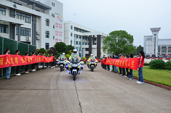 隨后,交警開路,考車開始駛出校園,老師們則在校門分列兩隊,目送車隊遠去,隨著最后一輛考車駛出校園,這場溫馨而感人的送考儀式圓滿地畫上句號。