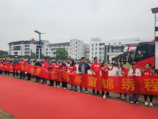 6月7日清晨,衢州第二中等專業學校的校園內早已是一片熱鬧而溫馨的景象。一條鮮艷的紅毯從文化廣場延伸至高三教學樓前,靜靜地等待著即將踏上人生新征程的學子們。