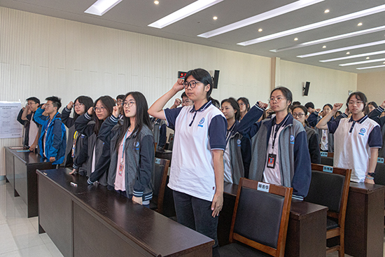活動伊始,師生齊聚一堂,共同見證了這一莊嚴而神圣的時刻。在肅穆的國歌聲中,入團宣誓儀式拉開序幕。