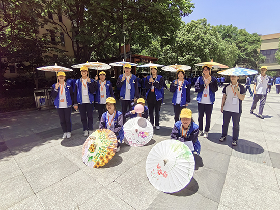 最吸引人眼球的是古風傘,大家紛紛來享受了一番“心傘送爽”的感覺。前期各班級學生親手繪制了美麗的圖案,“向陽而生、循夢而行”,怒放的向日葵、沉甸甸的紫葡萄、不畏嚴寒的梅花等,無不詮釋著同學們對人生價值的理解。