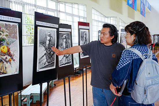 在交流研討環(huán)節(jié),各校教師展示本校學(xué)生作品,大家各抒己見,毫無保留地分享了教學(xué)經(jīng)驗(yàn)與心得,共同探討“提升工美專業(yè)教學(xué)質(zhì)量”“技能比賽”等議題,為中職工美教育的未來發(fā)展獻(xiàn)計(jì)獻(xiàn)策。通過交流研討,教師們不僅拓寬了教學(xué)思路,也增進(jìn)了彼此之間的了解和友誼。