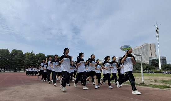 運動,彰顯風采;奔跑,凝聚力量。為構建體育活動大課間常態化模式,確保中職生每天一小時校園體育活動全面落到實處,進一步提升體育大課間跳操班級參與興趣和展示效果,6月13日下午,海寧技師學院在學校田徑場舉辦體育大課間比賽。比賽分為集體跑操(400M*2圈)和室外大課間跳操部分(有氧體操《偶像萬萬歲》)兩部分,校本部21級、22級、23級學生參加比賽。