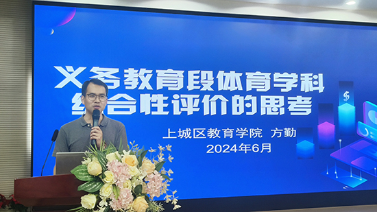 杭州市上城區(qū)教育學院體育教研員方勤老師則從新課程標準的立意、結構以及教學評價等多個維度出發(fā),進行了《新課程背景下〈體育與健康〉學科評價的實踐思考》的交流,并分享了上城學校在《體育與健康》學科學業(yè)評價方面的成功經(jīng)驗。