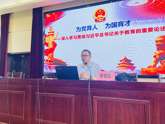 浙江外國語學院繼續教育學院書記周明寶作《為黨育人 為國育才》專題講座,他用激情昂揚的語言帶領老師們深入學習貫徹習近平總書記關于教育的論述,周老師還用一個個生動的教育故事鼓勵教師們以更高的標準要求自己,為國家培養更多的人才。麗水市委黨校趙偉老師,用一支粉筆書寫國學佳句,和老師們分析其精神內核,強調了傳統文化對于教育的重要性。臺州市椒江區職業中等專業學校張俊亮老師的《高情商溝通提升教師價值感與幸福感》講座幫助老師們學會了如何更有效地與學生和家長溝通,從而提高自己的價值感和幸福感。