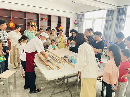 聽取專題講座之外,老師們又親身體驗了非物質文化遺產的魅力。長興非遺項目泗安酥糖的師傅為老師們展示精湛的傳統技藝。這樣的體驗不僅讓老師們近距離感受到了傳統手工藝的魅力,也激發了他們對非物質文化遺產的興趣和保護意識。