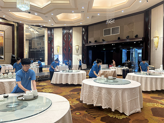 到達(dá)酒店之后,同學(xué)們齊聚宴會廳。酒店HR總監(jiān)為大家?guī)?ldquo;你好,新同事”的歡迎會,并開展德朧企業(yè)文化了解、酒店應(yīng)知應(yīng)會的學(xué)習(xí)。在未來兩周培訓(xùn)過程中,同學(xué)們將以小組為單位進(jìn)行理論、實操、分享會、游戲等多種方式的學(xué)習(xí)。