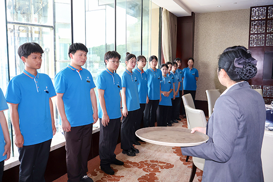 前三天為第一階段培訓(xùn),酒店會員經(jīng)理、前廳部經(jīng)理、人力資源總監(jiān)、行政總廚、銷售總監(jiān)等主講人分別開展專題講座,為同學(xué)們悉心講解百達(dá)星系會員體系、酒店服務(wù)禮儀規(guī)范及演練、人力資源制度與行為規(guī)范、食品衛(wèi)生安全和服務(wù)意識等理論知識。
