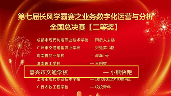 為培養“創新型、復合型、學科交叉型”數字人才,發揮數字人才支撐數字經濟的基礎性作用,加快推動形成新質生產力,為高質量發展賦能蓄力,嘉興市交通學校學生積極參加第七屆長風網學霸賽——運輸模擬賽項,與全國各大院校參賽選手展開了一場云端較量。歷經從校園賽到積分賽,最終,學校由戈梓潔老師帶領的小熊快跑團隊(21物流1班張家樂,22市場營銷胡宇軒,熊俊杰)和葉麗娜老師帶領的武財神團隊(21物流1班李雨川,靳翱翔,潘偉翔)兩支隊伍打進6月16日的總決賽,并分別喜獲全國二等獎,兩位老師也獲得最佳指導老師獎。