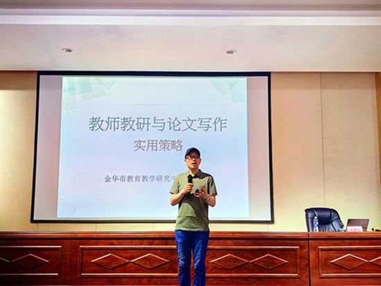 浙江省正高級教師、特級教師張國紅為教師們開展了《一線教師教科研與論文寫作的實用策略》講座。張老師強調了教育科研的重要性,指出它是提升教育教學質量的關鍵。他圍繞教育科研論文的三大要素細講解了教育科研與論文寫作的基本方法和注意事項,并分享了如何選擇引人入勝的標題、提出新穎獨特的論點以及進行邏輯清晰的論證等撰寫技巧。教師們紛紛表示,張老師的講座內容實用、針對性強,對提升自己的教科研能力和論文寫作水平具有很大的幫助。