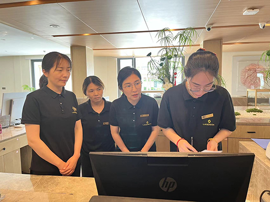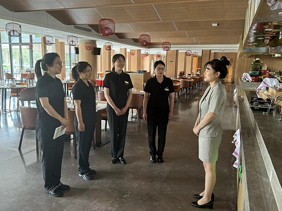 實踐過程中,酒店副總經理董淑女士攜手營銷部、前廳部、餐飲部等關鍵部門負責人,以“目標導向、靈活應變、個性服務、安全保障”為原則,將“真實VIP接待案例”與“現場實踐操作”相結合,對老師們進行了多角度、全方位的崗前培訓,培訓內容既實用又富有啟發性,極大地激發了教師們深入探索和實踐新時代旅游服務的熱情和動力。