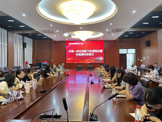 6月13日,杭州市財經(jīng)商貿(mào)大組在杭州市富陽區(qū)職業(yè)教育中心舉行了為期一天的教研活動。上午的活動分兩個會場同時進(jìn)行,財經(jīng)組分會場圍繞中高職一體化背景下的課程與抽測科目展開討論。