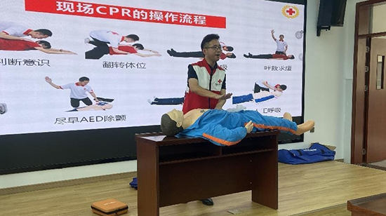 此次培訓(xùn)中,紅十字講師巧妙地結(jié)合案例講解、示范操作和現(xiàn)場演練,全面地為學(xué)員們講解了心肺復(fù)蘇、氣道異物梗阻及AED等急救的知識要點,詳細(xì)闡述了心肺復(fù)蘇緊急救護(hù)的基本原則、方法與步驟,耐心展示了心肺復(fù)蘇術(shù)、氣道異物梗阻急救等實用救護(hù)技術(shù)。學(xué)員們在培訓(xùn)過程中認(rèn)真聽講、動手練習(xí),迅速掌握了急救知識的關(guān)鍵要點,了解了應(yīng)急救護(hù)知識和心肺復(fù)蘇具體操作步驟方法,并增強了自身保護(hù)和救助、互救的實踐能力。