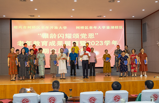 6月28日上午,紹興市柯橋區老年開放大學(區老年大學鑒湖校區)“銀齡閃耀頌黨恩”老年教育教學成果展演暨2023學年總結表彰大會在浙江開放大學柯橋學院三樓報告廳圓滿舉行。
