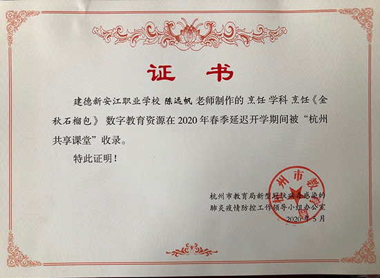 大學畢業后,順利成為了建德市新安江職業學校的一名正編烹飪教師。踏入職業教育的舞臺后,秉承工匠精神,不懈努力,在指導學生技能大賽以及教育教學等方面都做出了一定的成績。