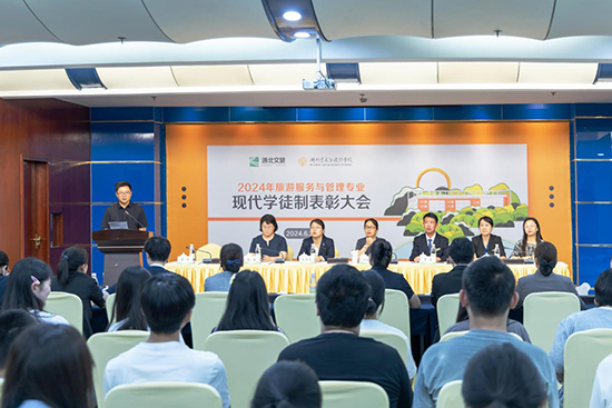 6月28日,浙江省湖州藝術與設計學校在浙北大酒店召開旅游服務與管理專業2024年現代學徒制表彰大會。浙北大酒店副總經理羅成、湖州賓館有限公司總經理助理兼人力資源部經理沈美華、湖州東吳開元名都酒店有限公司人資運營經理王淑南、浙江省湖州藝術與設計學校副校長馮君彥、招生就業處處長殷英、綜合專業部部長孫佳、企業指導師傅以及現代學徒制班級實習生參加會議。